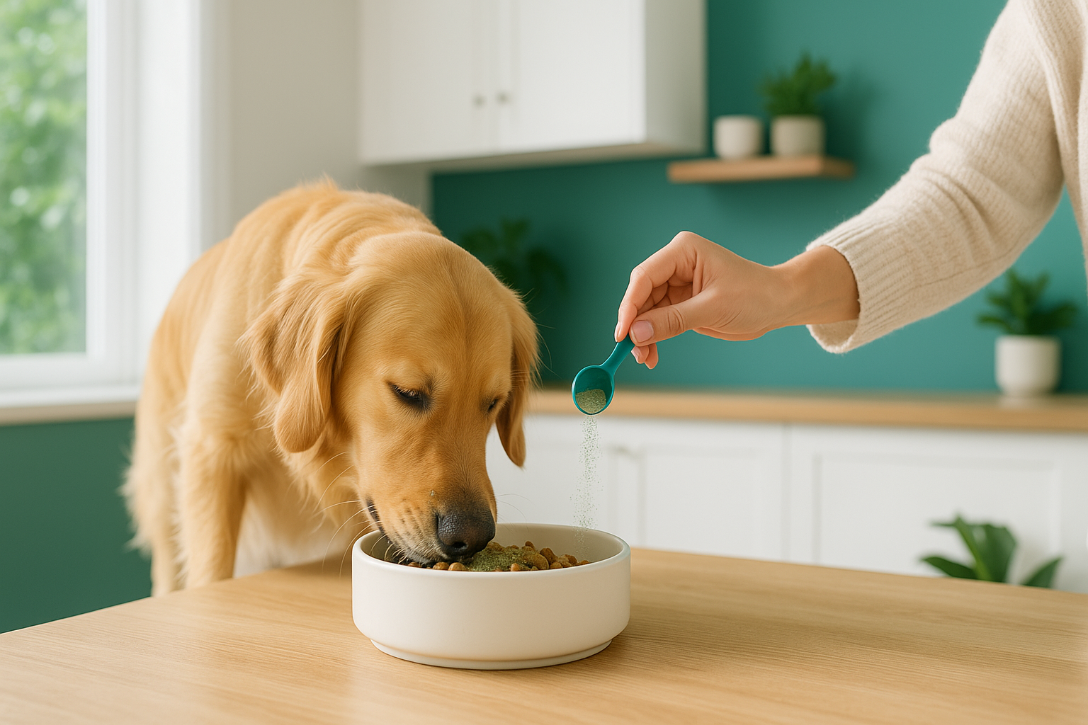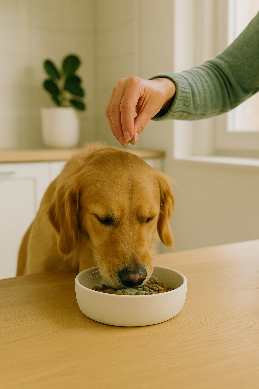"I’ve been using this dog teeth cleaning powder for awhile now, and its great, my dog isn’t a fan of brushing, so this powder is make thing easy. It’s super easy to use — just sprinkle it on their food, and they don’t even notice it’s there."- Sofia R.