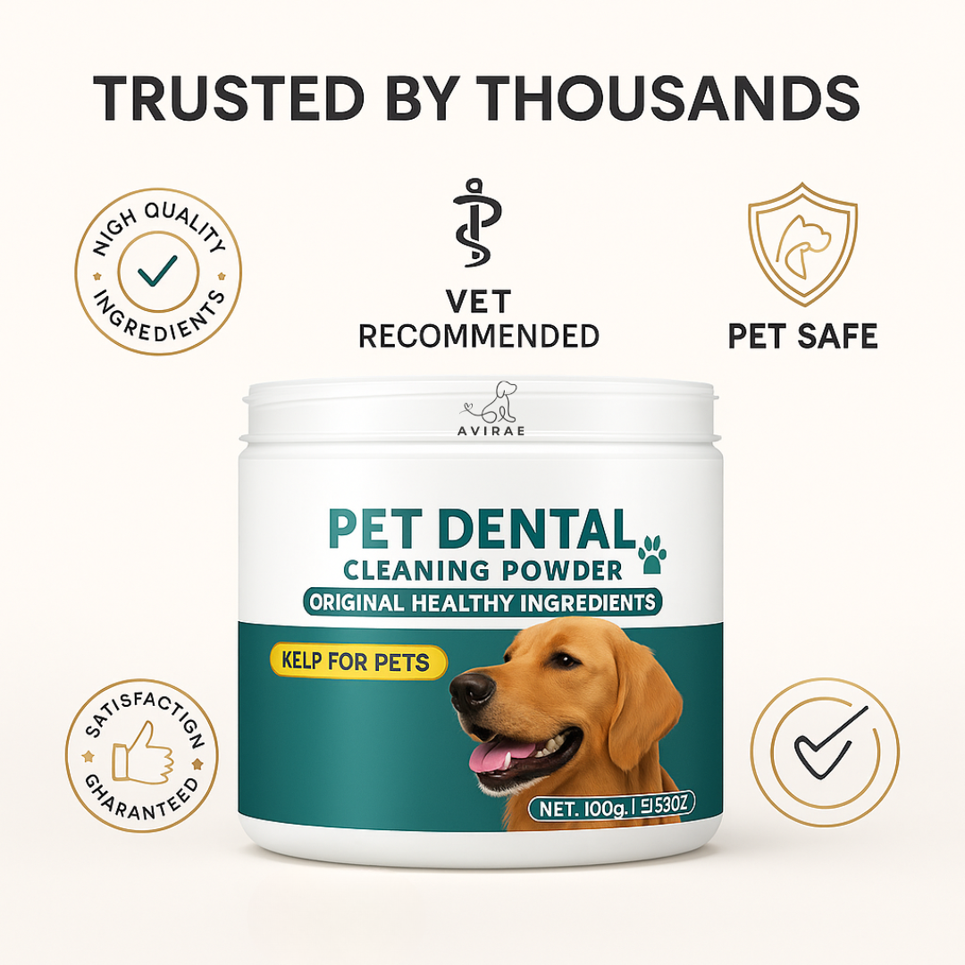"I must say this is by far the BEST cleaning powder I have ever used for my fur baby. He started having very bad breath and would not let me brush his teeth. After about a week of using the Avirae pet dental cleaning powder NO MORE BAD BREATH! I promise you this powder works!" - Margie F. ★★★★★